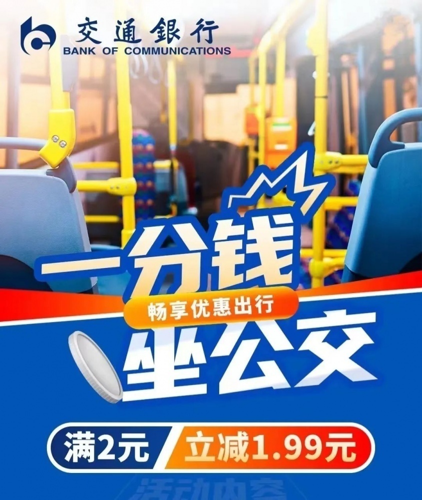 使用交通銀行手機(jī)APP出示付款碼乘車可享滿2元立減1.99元優(yōu)惠。活動(dòng)總名額10000個(gè),單用戶每日可享受1次優(yōu)惠,每月可享受10次優(yōu)惠,名額有限,先到先得。
