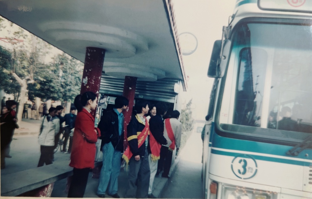 ▲00年代,售票員工作場景。售票員站在車門口,微笑迎著上車乘客。