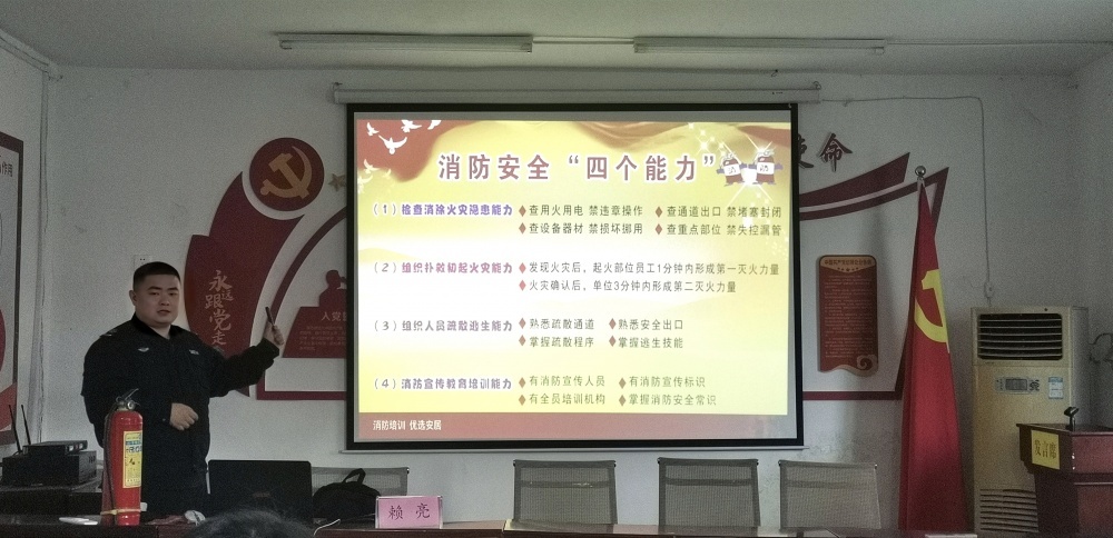 培訓(xùn)中,賴(lài)亮教官首先通過(guò)播放火災(zāi)警示視頻,讓干部職工直觀地認(rèn)識(shí)火災(zāi)危害,喚起大家對(duì)消防安全的高度重視。隨后賴(lài)亮教官結(jié)合多起典型事故案例進(jìn)行消防安全知識(shí)授課,重點(diǎn)講解了火災(zāi)的特性與預(yù)防、消防安全四個(gè)能力建設(shè)、火災(zāi)應(yīng)急處置等方面內(nèi)容,同時(shí)現(xiàn)場(chǎng)對(duì)各類(lèi)消防器材的使用方法及動(dòng)作要領(lǐng)進(jìn)行實(shí)操演示。