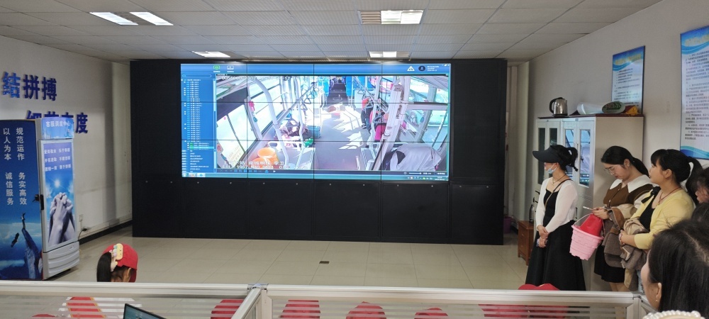 圖/在客服調(diào)度中心,整墻的大屏幕,變動的車輛信息和實時車載畫面,深深吸引了同學們的目光。