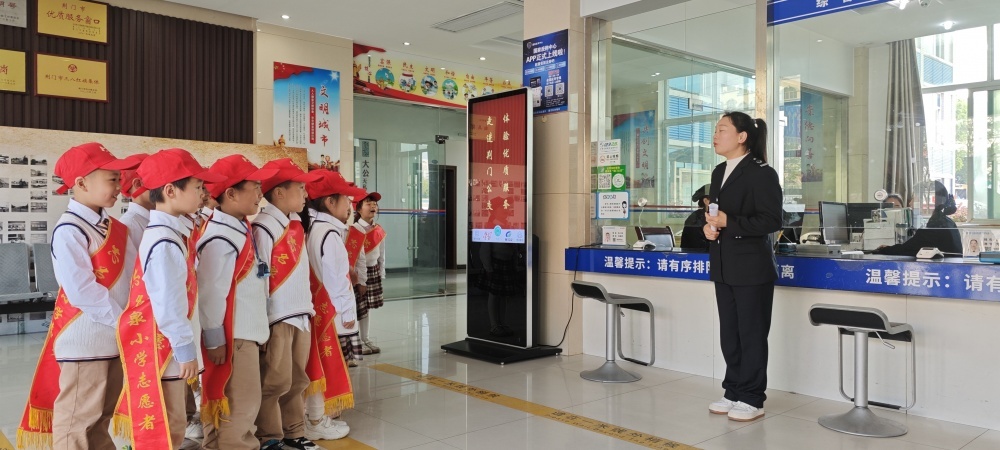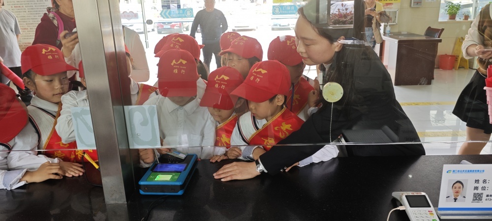 圖/在公交營業(yè)廳,工作人員為同學們介紹了公交IC卡種類以及“學生卡”辦理流程,通過實物演示的方式與同學們互動問答。