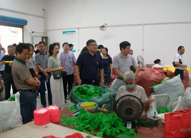 當(dāng)日9時,在荊門市圓夢愛心幫扶會會議室中舉行了升旗儀式,黨員們重溫入黨誓詞,認(rèn)真學(xué)習(xí)了習(xí)近平總書記視察湖北重要講話精神。隨后孟麗華介紹了市圓夢殘疾人庇護(hù)工場的相關(guān)情況,2014年,在孟麗華的牽頭下,籌建了一個助殘扶弱的公益組織,取名為荊門市圓夢愛心幫扶會,創(chuàng)辦了一個專門為殘疾人服務(wù)的庇護(hù)工場。為了更深入的了解市圓夢殘疾人庇護(hù)工場,黨員們在解說員的陪同下,參觀殘疾人員工的工作環(huán)境,還一起與員工們編織手工花朵,為工場打掃衛(wèi)生,清除雜草,給這些殘疾人員工一個更好的工作環(huán)境。