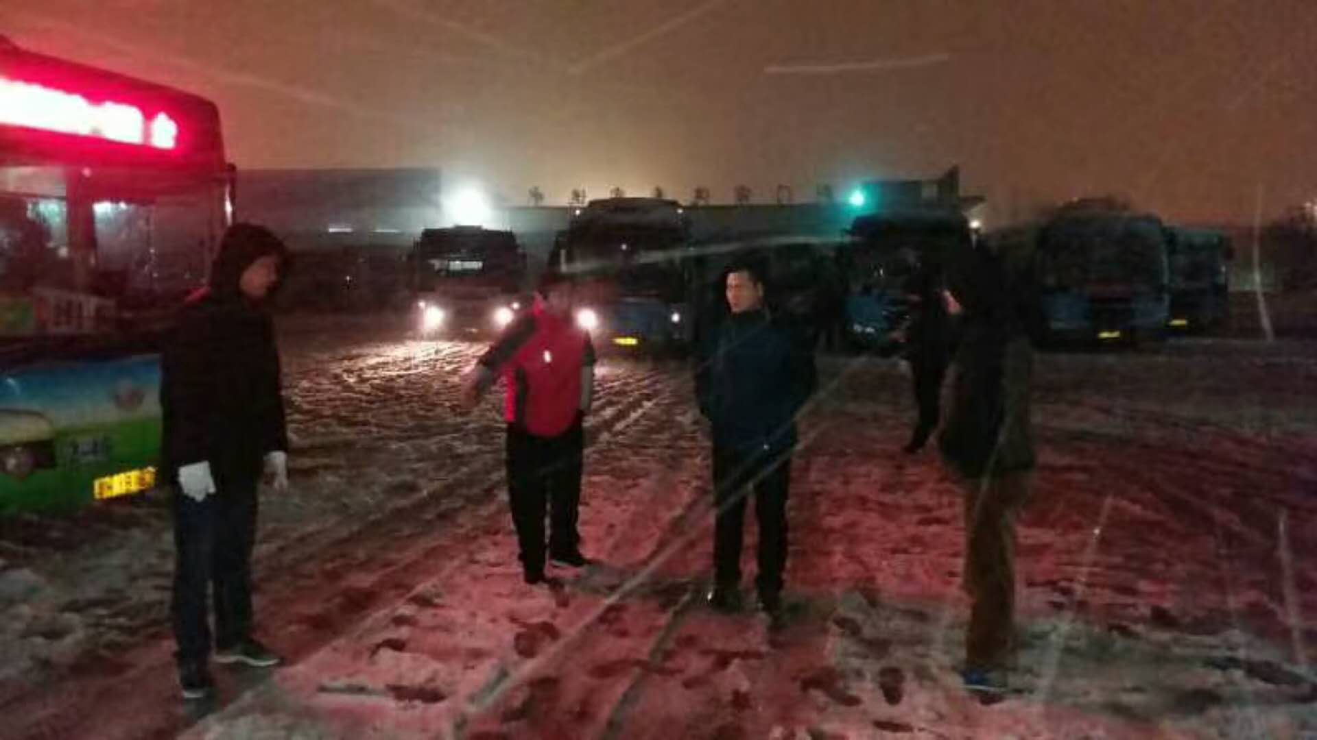 1月3日下午,荊門迎來了新年里第一場大雪,荊門氣象已經(jīng)發(fā)布暴雪警報(bào),收到暴雪警報(bào)后,荊門市公共交通集團(tuán)有限公司立即成立了150人的暴雪應(yīng)急隊(duì),早早準(zhǔn)備了防凍防滑物資:鹽2噸,防滑鏈400余條,鐵鍬60把,救援車10臺;公司領(lǐng)導(dǎo)全部到一線坐鎮(zhèn)指揮,管理人員向近千名駕駛員傳授了雨雪天安全駕駛知識;晚十點(diǎn),巡查人員開始查看危險(xiǎn)路段結(jié)冰情況,確定凌晨裝防滑鏈和撒鹽人員;凌晨4點(diǎn)應(yīng)急人員和駕駛員全部到位,按探路組、裝防滑鏈組、撒鹽組、監(jiān)管組分工負(fù)責(zé),并對出車駕駛員逐車逐人安全叮囑!以求能確保所有車輛都能一路平安!