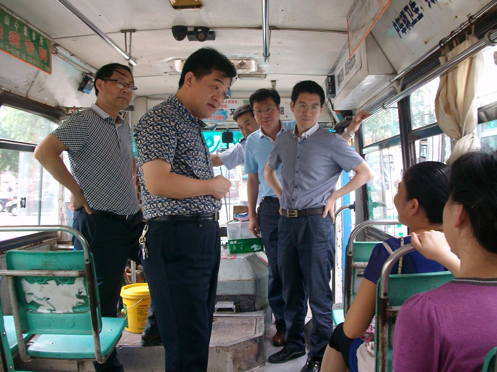 當(dāng)日中午12時(shí),正值高溫時(shí)刻,伍應(yīng)彪等領(lǐng)導(dǎo)冒著炎炎夏日來(lái)到?;圮囌荆赐繂?wèn)高溫下堅(jiān)守工作崗位的公交職工。在16路、21路、22路線正待發(fā)班的公交車前,伍應(yīng)彪上車與一線駕駛員親切握手,詢問(wèn)了解駕駛員們的身體和工作情況,并聽(tīng)取了一公司負(fù)責(zé)人對(duì)改善職工們的工作和休息環(huán)境等工作匯報(bào)。在與駕駛員們親切交談中,伍應(yīng)彪親自為駕駛員們送上了礦泉水、毛巾、人丹、清涼油等防暑降溫用品。同時(shí),他還向部分乘客征求了改善乘車環(huán)境的意見(jiàn)和建議。