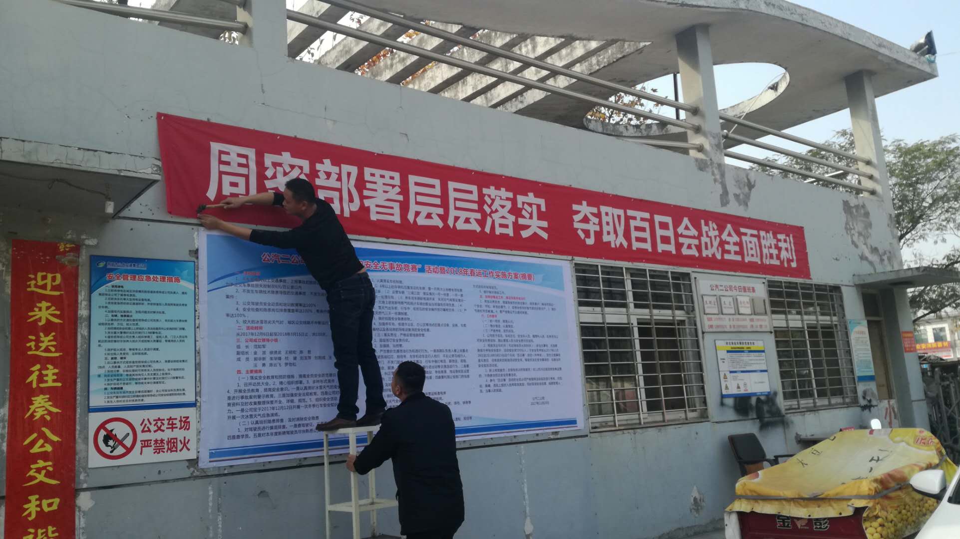 自11月26日“百日賽”活動啟動以來,二公司對照活動方案,穩(wěn)步推進(jìn)各項(xiàng)安全管理工作,目前已完成對活動的宣傳,責(zé)任狀的簽訂,應(yīng)急物資的準(zhǔn)備工作,還利用各類會議、板報(bào)、短信微信、橫幅、車載車貼積極營造安全氛圍,提高一線人員的安全意識,掌握開展活動的重要性。